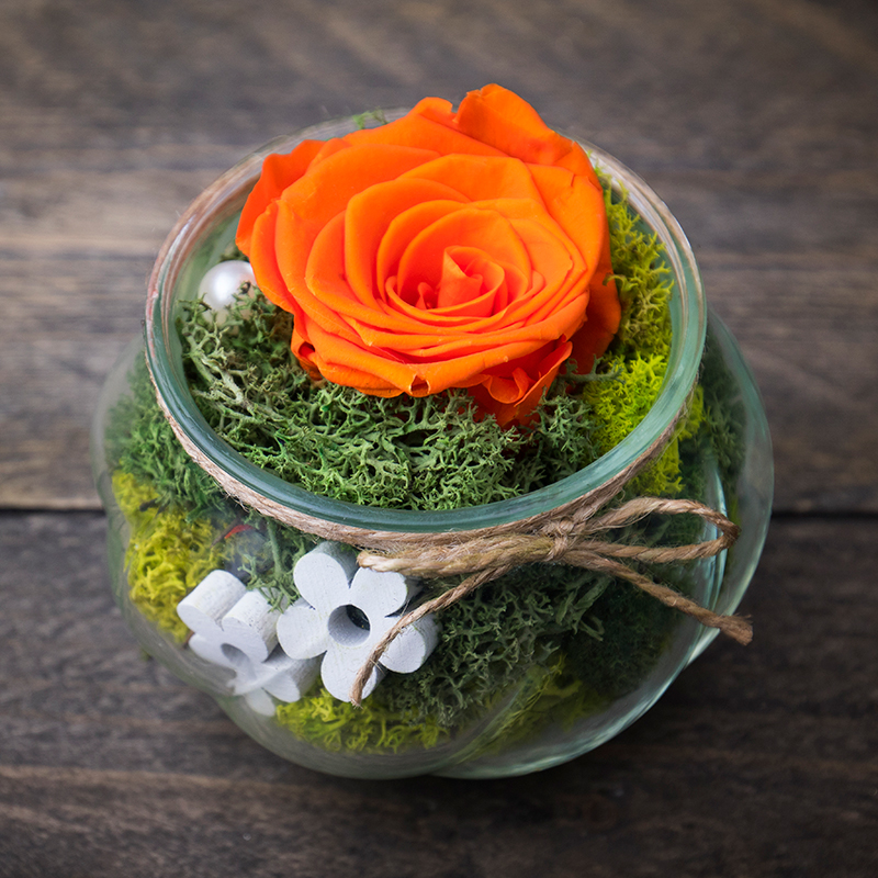 Stabilizovaná ruža oranžová + vázička